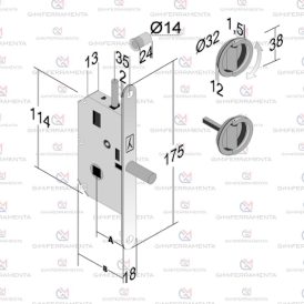 Serratura metallo Ent.63 Reversibile Destra e Sinistra Interesse Pistoni mm 37