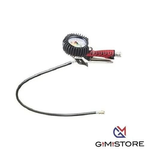 Pistola di gonfiaggio professionale con manometro anti-shock; Corpo in Tecnopolimero caricato fibra di vetro con impugnatura gommata; Manometro Ø80 omologato CEE (conforme EN12645:2014); Scala 0÷12 bar – classe di precisione 1.6; Tubo PVC Ø6.5×12 lunghezza 400 mm.
