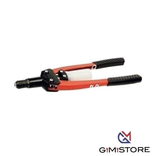 Lunghezza 420 mm.In acciaio verniciato. Per rivetti Mm. 2,4/7,8. Impugnatura lunga per una facile compressione.